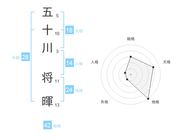 五十川 将暉さんを姓名の画数から五運を鑑定