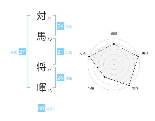 対馬 将暉さんの総格は48画の4点!