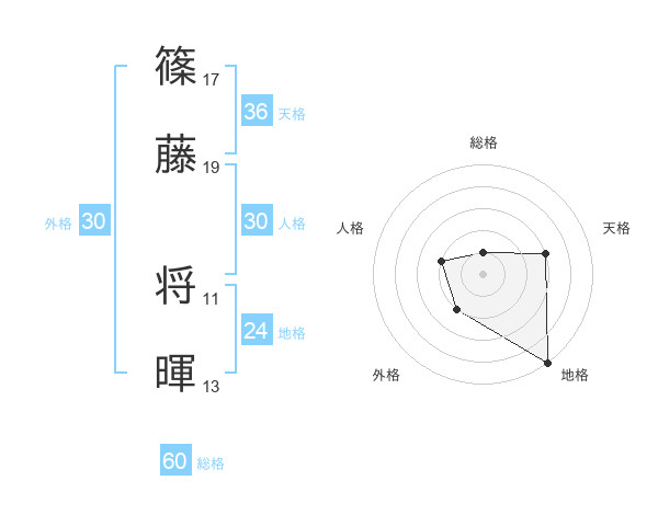 篠藤 将暉さんを姓名の画数から五運を鑑定