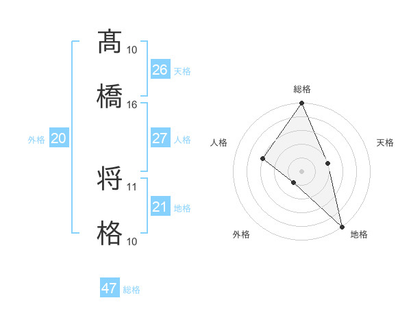 髙橋 将格さんの総格は47画の5点!
