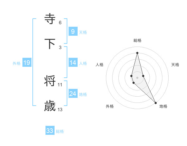 寺下 将歳さんの総格は33画の4点!