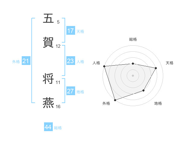 五賀 将燕さんの総格は44画の2点!