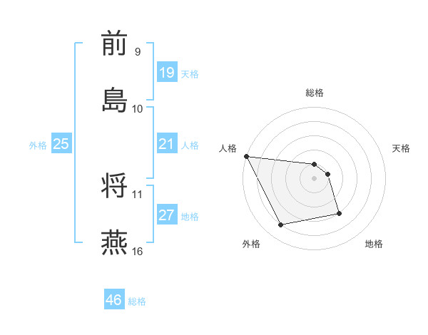 前島 将燕さんの総格は46画の1点!