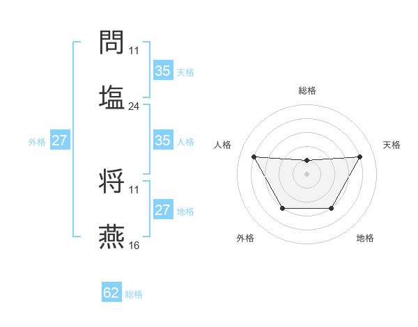 問塩 将燕さんを姓名の画数から五運を鑑定