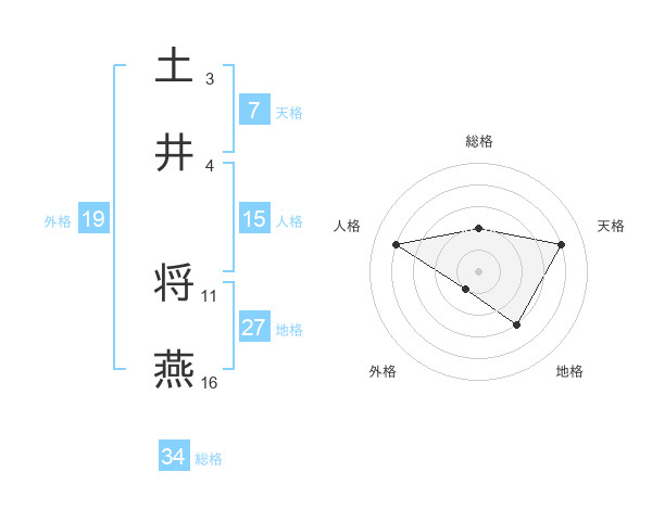 土井 将燕さんの天格は7画の4点!