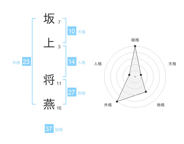 坂上 将燕さんの総格は37画の5点!