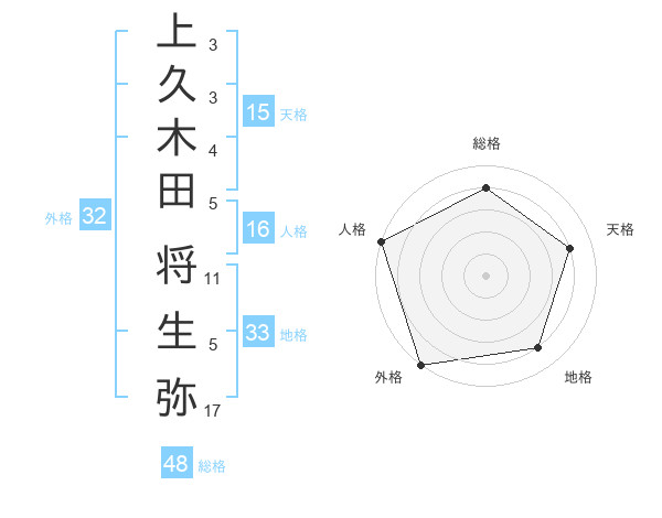 上久木田 将生弥さんの外格は32画の5点!