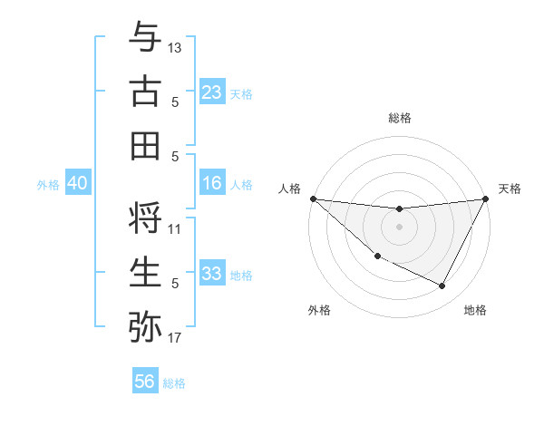 与古田 将生弥さんを姓名の画数から五運を鑑定