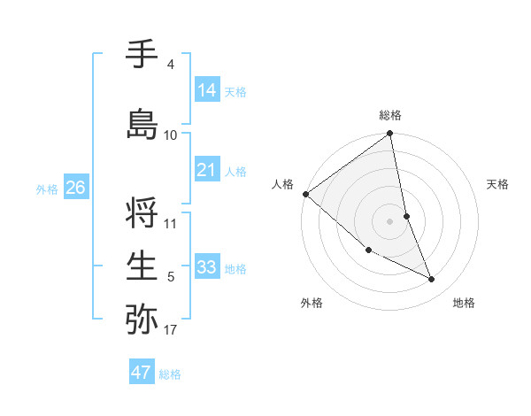 手島 将生弥さんを姓名の画数から五運を鑑定