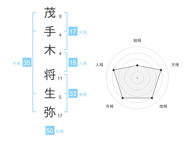 茂手木 将生弥さんの総格は50画の2点