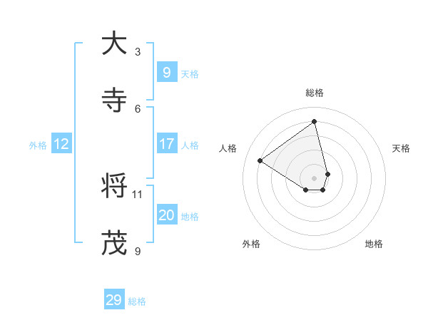 大寺 将茂さんの総格は29画の4点!