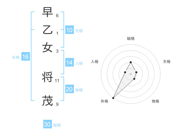 早乙女 将茂さんの総格は30画の2点!