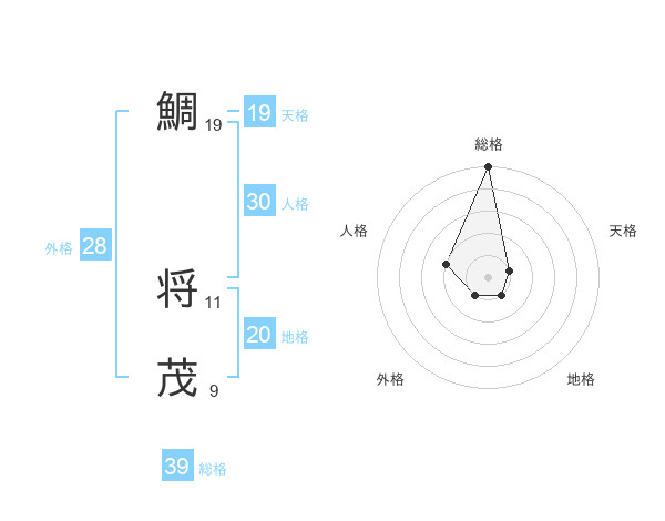 鯛 将茂さんの総格は39画の5点!
