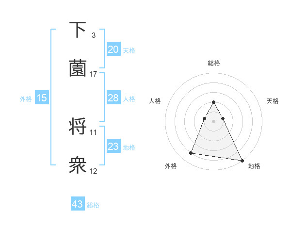 下薗 将衆さんの総格は43画の2点!