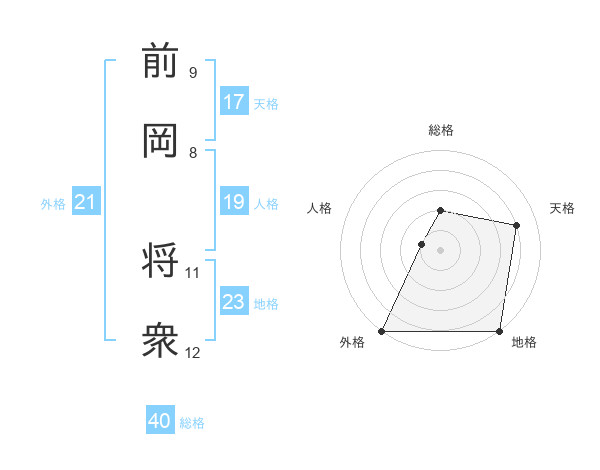 前岡 将衆さんを姓名の画数から五運を鑑定