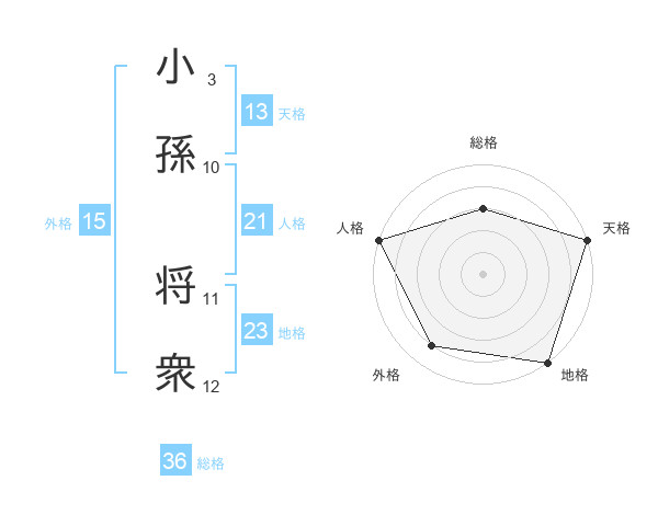 小孫 将衆さんを姓名の画数から五運を鑑定