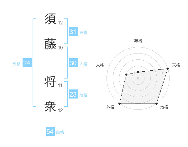 須藤 将衆さんを姓名の画数から五運を鑑定