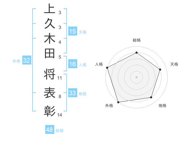 上久木田 将表彰さんを姓名の画数から五運を鑑定