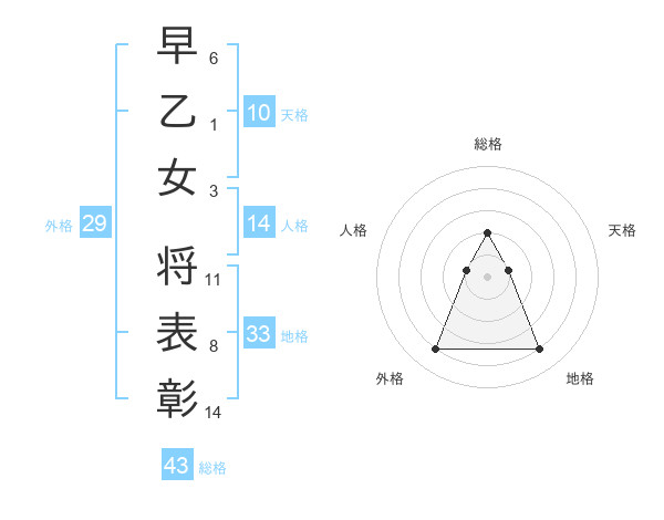 早乙女 将表彰さんを姓名の画数から五運を鑑定