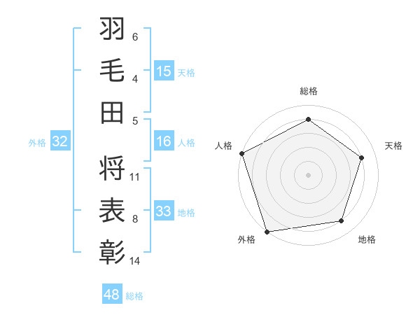 羽毛田 将表彰さんを姓名の画数から五運を鑑定