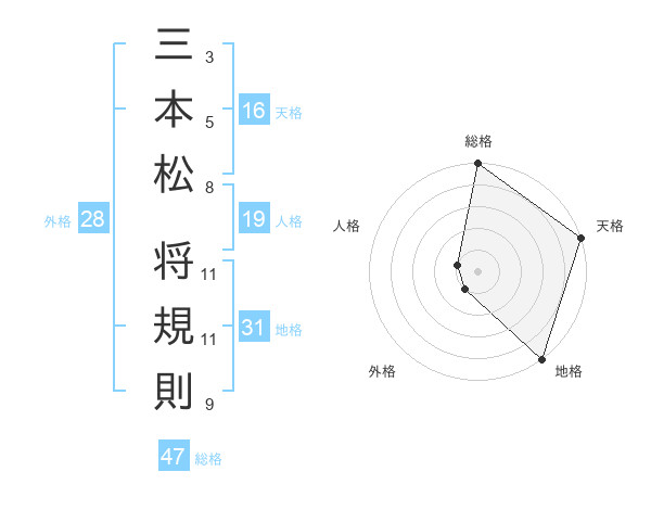 三本松 将規則さんを姓名の画数から五運を鑑定