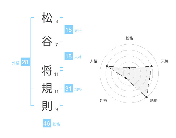 松谷 将規則さんを姓名の画数から五運を鑑定