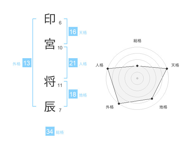 印宮 将辰さんを姓名の画数から五運を鑑定