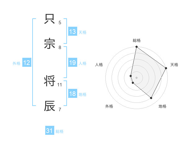 只宗 将辰さんを姓名の画数から五運を鑑定