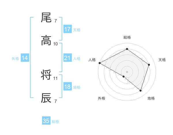 尾高 将辰さんを姓名の画数から五運を鑑定