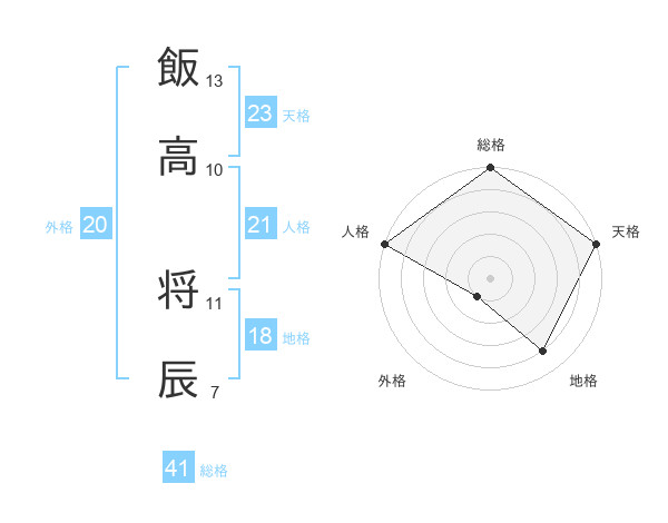 飯高 将辰さんの天格は23画の5点!