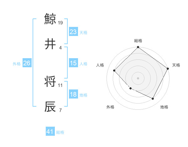 鯨井 将辰さんの天格は23画の5点!