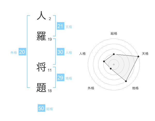 人羅 将題さんの総格は50画の2点!