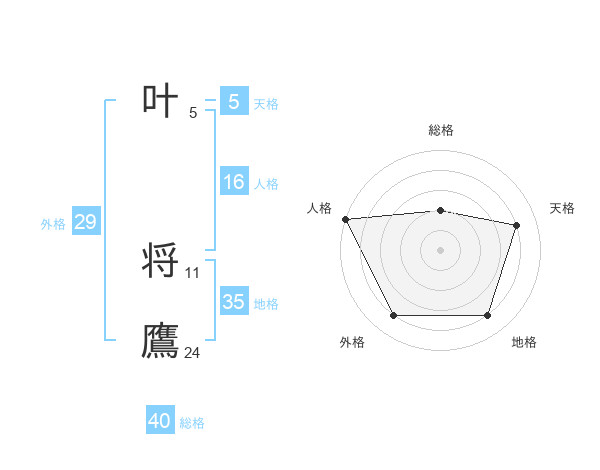 叶 将鷹さんの総格は40画の2点!