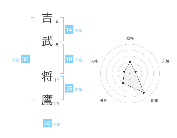 吉武 将鷹さんを姓名の画数から五運を鑑定