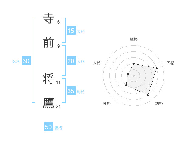 寺前 将鷹さんの総格は50画の2点!