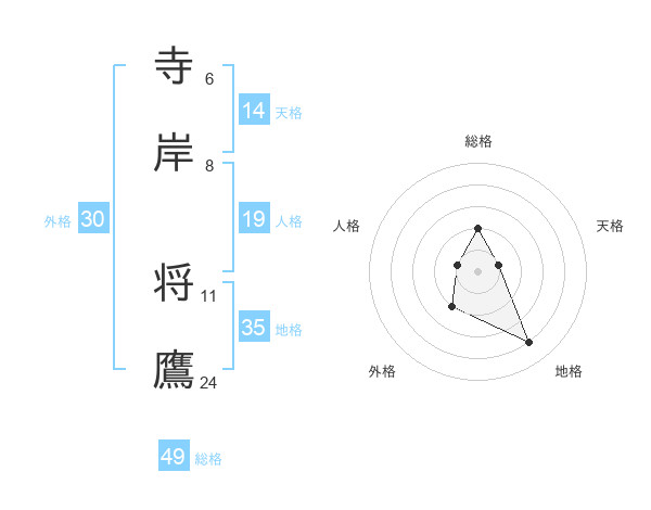 寺岸 将鷹さんを姓名の画数から五運を鑑定