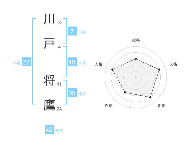 川戸 将鷹さんを姓名の画数から五運を鑑定