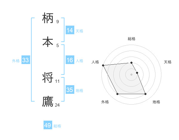 柄本 将鷹さんを姓名の画数から五運を鑑定