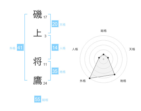 磯上 将鷹さんを姓名の画数から五運を鑑定