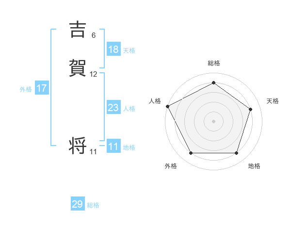 吉賀 将さんの総格は29画の4点!