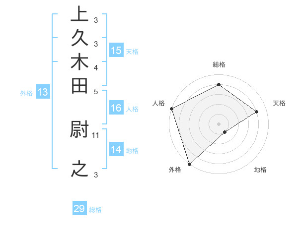 上久木田 尉之さんを姓名の画数から五運を鑑定