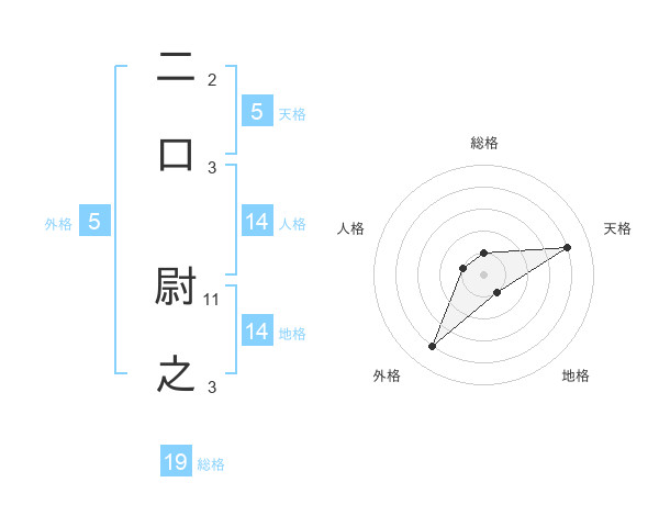 二口 尉之さんの天格は5画の4点!