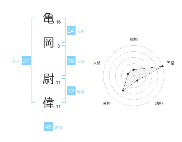 亀岡 尉偉さんを姓名の画数から五運を鑑定