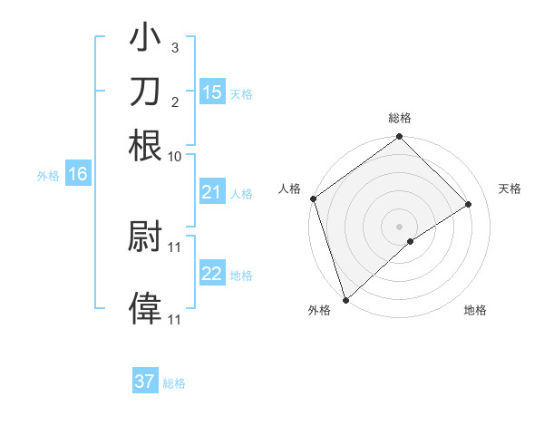 小刀根 尉偉さんを姓名の画数から五運を鑑定