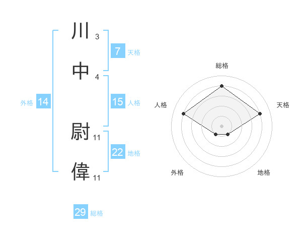 川中 尉偉さんの総格は29画の4点!
