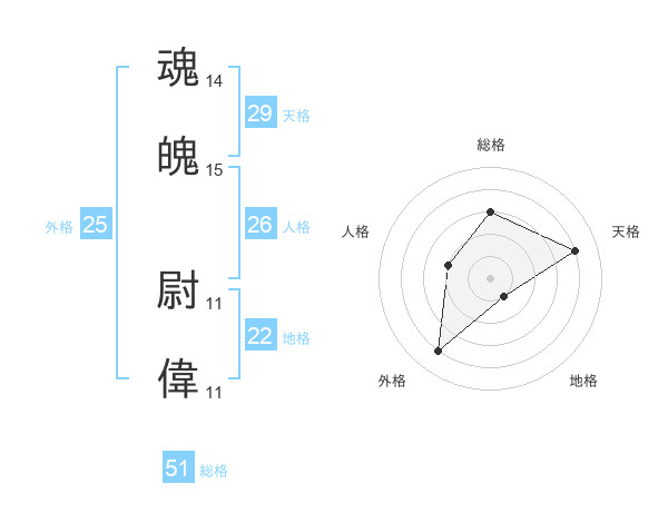 魂魄 尉偉さんを姓名の画数から五運を鑑定
