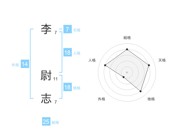 李 尉志さんの総格は25画の4点!