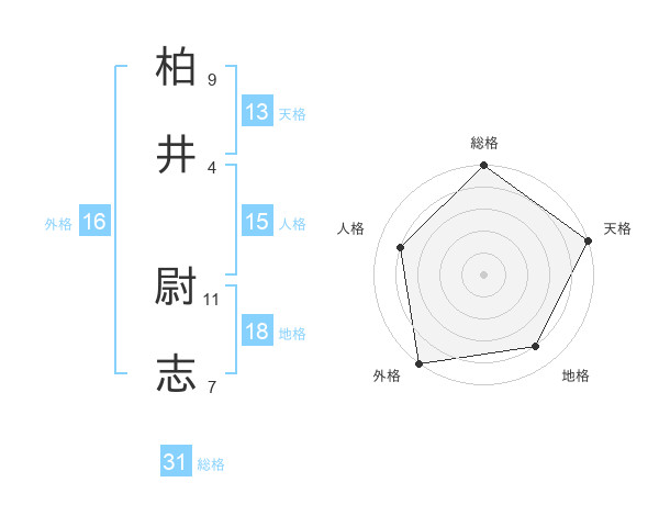 柏井 尉志さんの総格は31画の5点!