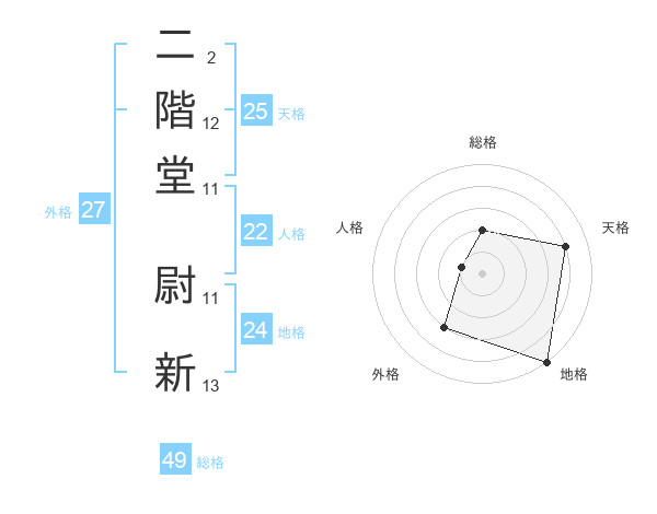 二階堂 尉新さんを姓名の画数から五運を鑑定