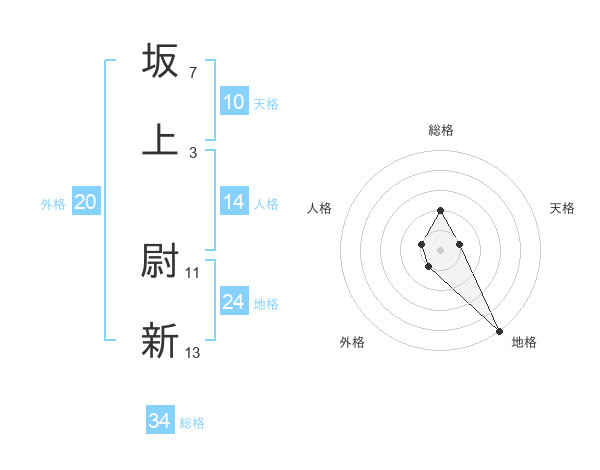 坂上 尉新さんの総格は34画の2点!